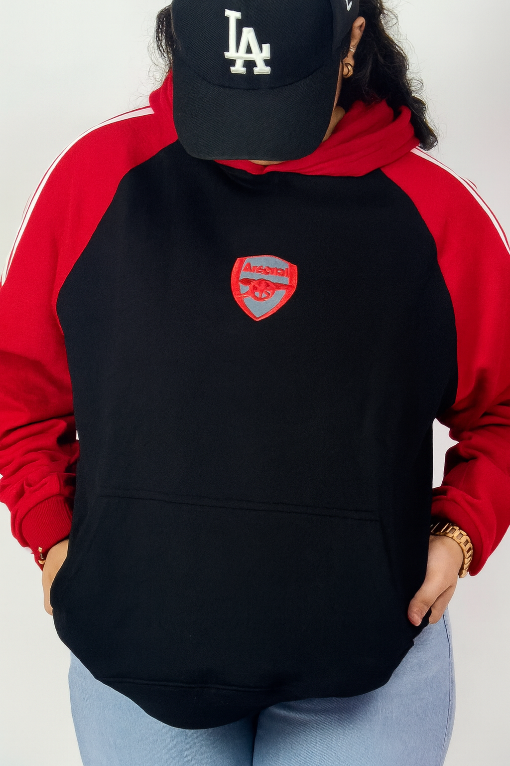 Elevate your casual wear with this Black & Red Arsenal Hoodie, designed for comfort and style. Featuring bold red sleeves and hood with a contrasting black body, this hoodie showcases the Arsenal crest on the chest for a sporty edge. Perfect for game days, streetwear, or everyday layering, it offers both warmth and fashion in one versatile piece.
