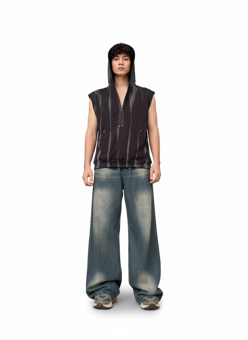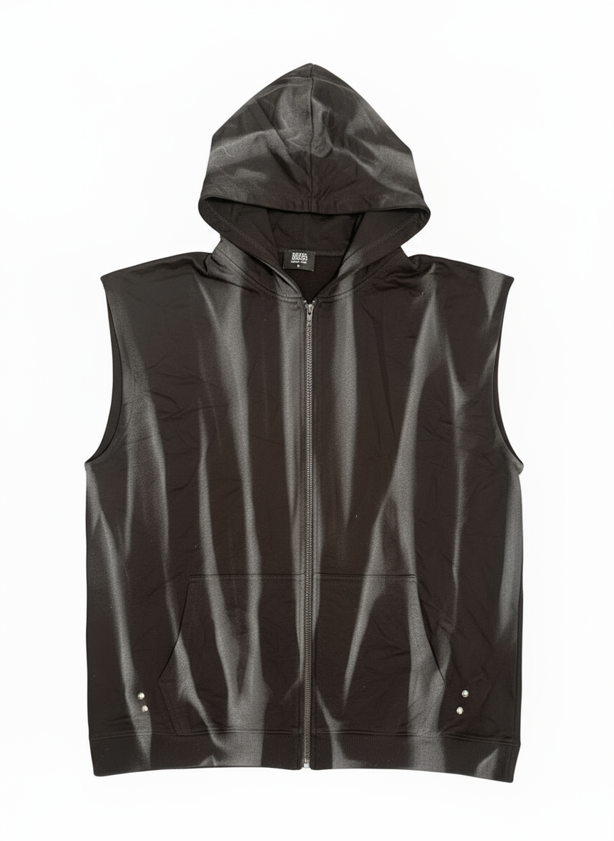 This stylish black sleeveless hoodie is designed for comfort and versatility. Made with soft, breathable fabric, it features a full front zipper, an adjustable hood, and two front pockets for convenience. The sleek sleeveless design makes it perfect for layering over t-shirts or wearing on its own during workouts, casual outings, or streetwear looks. A modern essential that combines function and style.