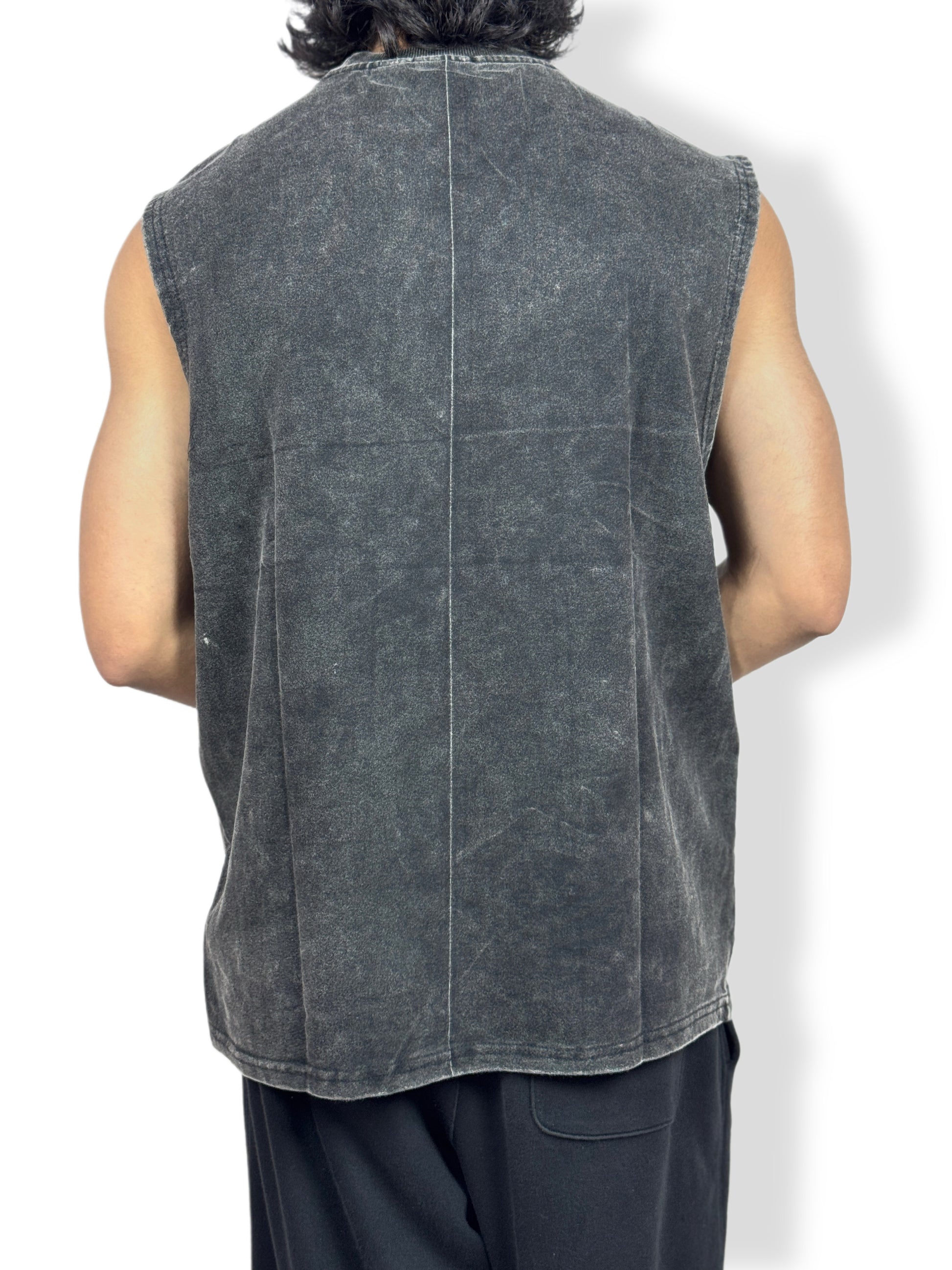 Sleeveless, Vintage-Washed, Graphic, Casual.